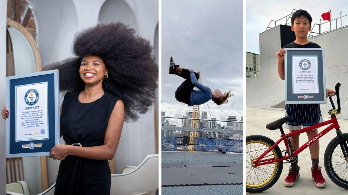 Guinness World Records Day 2025 is here, and record-breakers around the world have pulled off some wild and wonderful feats to mark the occasion. From the roof of London’s O2 Arena to a quad bike in the Middle East and gravity-defying stunts in China, challengers brought everything they had — and came away with brand-new records. In London, three UK records were smashed atop the Up at The O2 roofwalk, setting the stage for the first-ever permanent Guinness World Records venue, scheduled to open at the iconic arena in 2026. Josh Patterson, known for his endurance stunts, clocked in at 4 minutes 40.79 seconds for the fastest climb and descent of The O2. The previous target had been set at 10 minutes, making his achievement less of a win and more of a demolition. Meanwhile, Gladiators star Jodie Ounsley muscled her way into the record books by carrying 360 kilograms in sandbags in one minute — beating the minimum requirement by a solid 160 kilograms to claim the title for most weight moved by sandbag carry (female). And former GB gymnast Lucie Colebeck nailed 17 standing backwards somersaults in 30 seconds, landing her second Guinness World Record, even with challenging wind conditions. “This year we are encouraging everyone to be part of Guinness World Records Day,” said adjudicator Will Munford. “No matter what your passion or skill, there is a record to be broken.” Around the world, the record-breaking was just as eye-popping: USA: Aevin Dugas reclaimed the title for largest afro (female) with hair measuring 29 cm tall, 31 cm wide, and a staggering 190 cm in circumference. CHINA: A cyclist pulled off the highest bicycle backflip, soaring 2.90 meters (9 ft 6 in) into the air. MENA region: A team of two set the bar for most football sole touches on a moving quad bike in 30 seconds, notching 23 touches. JAPAN: One daring participant set a unique record for most drink cans placed on the body using only air suction — a feat of balance, lung power, and a little bit of stickiness. Whether it’s a physical challenge, a quirky talent, or a test of creativity, Munford said the day is about pushing personal limits and inspiring others to do the same. “Seeing all the records from around the world this year, from football to human body feats, it shows the range of records but all with the same goal: to do their best.” With a permanent Guinness World Records venue on the horizon, fans may soon be able to attempt record-breaking feats firsthand — and maybe walk away as world champions themselves.