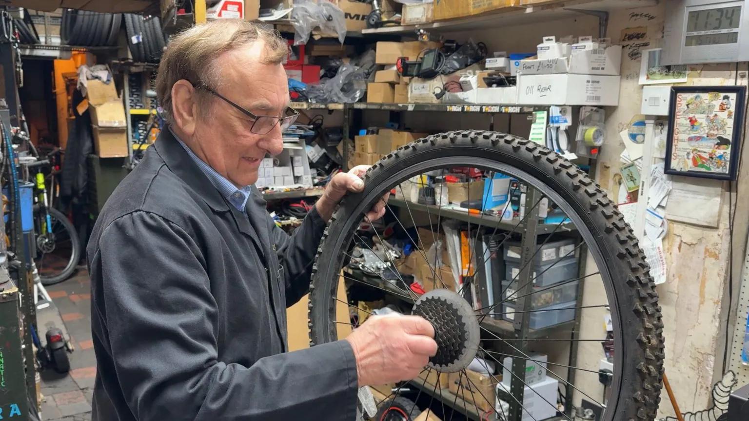 Tony Baines has spent nearly seven decades in the same cycle shop—and he's not done yet. Now 82, Baines started working at D Speight Cycles in Scunthorpe when he was just 15 years old. More than 68 years later, he’s still clocking in at the same storefront, now as its owner, working side-by-side with his grandson Aiden. “I just don’t know where the time’s gone,” Baines said. “If I’m 93 and I’m still fit, I’ll be here.” He first joined the shop in 1957 thanks to a bit of luck and a helpful neighbour. “I lived next door to Don Speight, the original owner,” Baines said. “He asked me if I wanted to work, because I couldn’t get a job anywhere. And I said, well, it will be all right until I get called up in the Army—which didn’t happen—and I’m still here!” The shop has long been a fixture in Scunthorpe, and for a time, so were the daily waves of steelworkers who rode their bikes home from shift. “You would never have crossed Frodingham Road for a row of bicycles, and they used to queue outside the door to come in,” Baines recalled. In those early years, the business wasn’t just about bicycles. “We even did motorbikes in the earlier days,” he said. “We sold more mopeds from here than anywhere in Britain.” The 1960s and 70s were the busiest decades, but even as the bicycle industry changed, Baines kept adapting. “Bicycles are not the thing nowadays like they used to be,” he said. “We used to sell hundreds at Christmas. It’s all electric stuff now, that’s what people want—electric bikes, electric scooters.” Rather than resist the shift, he learned to roll with it. “We’ve learned how to deal with them as we’ve come along. We’re obviously learning all the time.” Baines took over the shop 37 years ago, but chose not to change its name. “I wanted to keep the name. I could have changed it, but I kept his name there. People knew it.” And in Scunthorpe, people still do. Steve Waddingham, 75, remembers buying his first bike from Tony in 1964. “He’s been my go-to for bikes ever since,” Waddingham said. “I think it’s absolutely brilliant he’s still doing it. It’s his life.” Baines says he has no plans to retire. “I’ve just got in such a routine now that I come to work and repair the bikes, have customers coming in and we’re usually busy,” he said. “It keeps me on the go, keeps me fit.”
