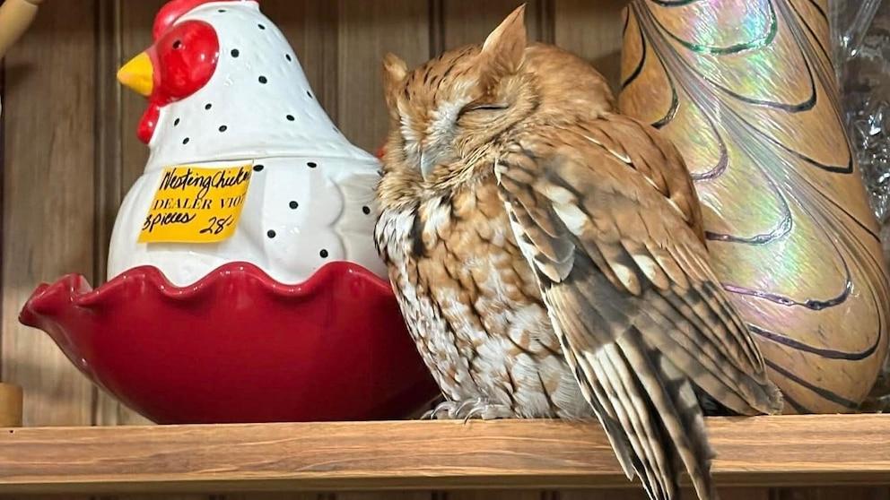 Shoppers in East Durham probably expected to find vintage lamps, old records, maybe a cookie jar shaped like a chicken. They did not expect the chicken jar to have company. Tucked right beside it was a very real, very asleep eastern screech owl, perched on a shelf like it had been priced and placed there intentionally. According to the New York State Department of Environmental Conservation, customers at The Market Place were browsing on February 21 when they noticed “something extremely lifelike” staring back at them. Well, sleeping back at them. The bird’s eyes were firmly shut as it rested among the collectibles, completely unbothered by the foot traffic. When environmental conservation police officers arrived, they found the brown and white owl still snoozing. Officers gently cradled the bird and carried it outside, releasing it into a wooded area nearby. Once awake, it flew straight into a tree, presumably to finish its nap somewhere less decorative. The owl’s surprise appearance raised a few questions, including how it got into the store in the first place. As of Friday, officials said it wasn’t immediately clear, and an email to the store’s owners is still awaiting a reply. Eastern screech owls are nocturnal and tend to nest in tree cavities, which makes its choice of home decor section a little off-brand. But it certainly made for a memorable antique find.