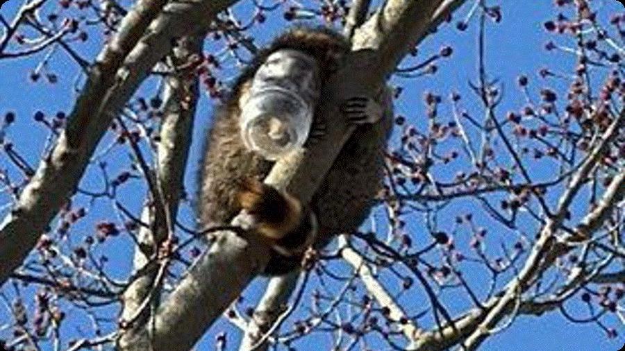 Sticky Situation: A Raccoon was Just Rescued in a Tree After a Peanut Butter Jar Got Stuck on Its Head