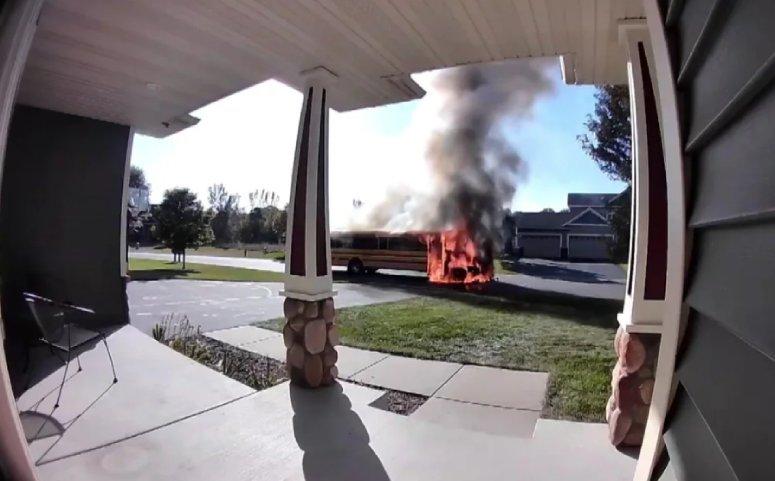 What began as a quiet afternoon in East Bethel, Minnesota, turned into a terrifying and ultimately heroic moment when a school bus burst into flames just after dropping off students. Kari Thorp had stepped outside her home to greet her daughter when she spotted smoke and fire coming from beneath the approaching bus. “Kids were crying. Kids were scared and freaking out,” Thorp said. “It was quite emotional and kind of frantic.” Without hesitation, she ran toward the bus to alert the driver, Rick Gratton. The two immediately began ushering the 22 children from East Bethel Elementary School to safety. Within minutes, the bus was fully engulfed. Thorp’s Ring doorbell camera later captured the dramatic scene — children standing together in front of her home as thick smoke filled the air and flames consumed the vehicle. “It moved pretty fast,” Thorp recalled. “It was probably within 15 minutes that thing was engulfed. It was crazy to see the tires and hear the tires explode.” Despite the destruction of the bus — and the loss of some backpacks and lunchboxes — every child made it out safely, thanks to Thorp’s quick action and Gratton’s composure. Parents and school officials have praised the pair as heroes. “Their calm and courage made all the difference,” one parent said. “It could have been so much worse.” For Thorp, the whole ordeal still feels surreal. “I just did what any mom would do,” she said. “I saw kids in danger — and I ran.”
