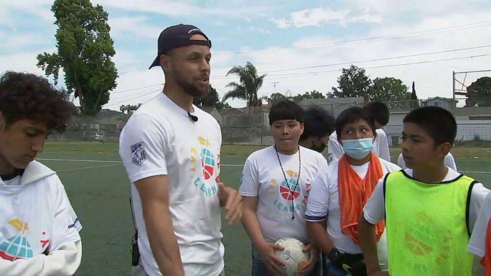 Golden State Warriors star Stephen Curry brought joy and excitement to students in Oakland, California, with a surprise visit through his Eat.Learn.Play. Foundation. Curry emphasized the importance of play, learning, and access to fresh produce, and played a fun game of soccer with the kids.. Through his inspiring actions and dedication to the community, Curry hopes to create lasting imprints on the lives of young people, providing them with opportunities for growth, self-discovery, and a sense of belonging.