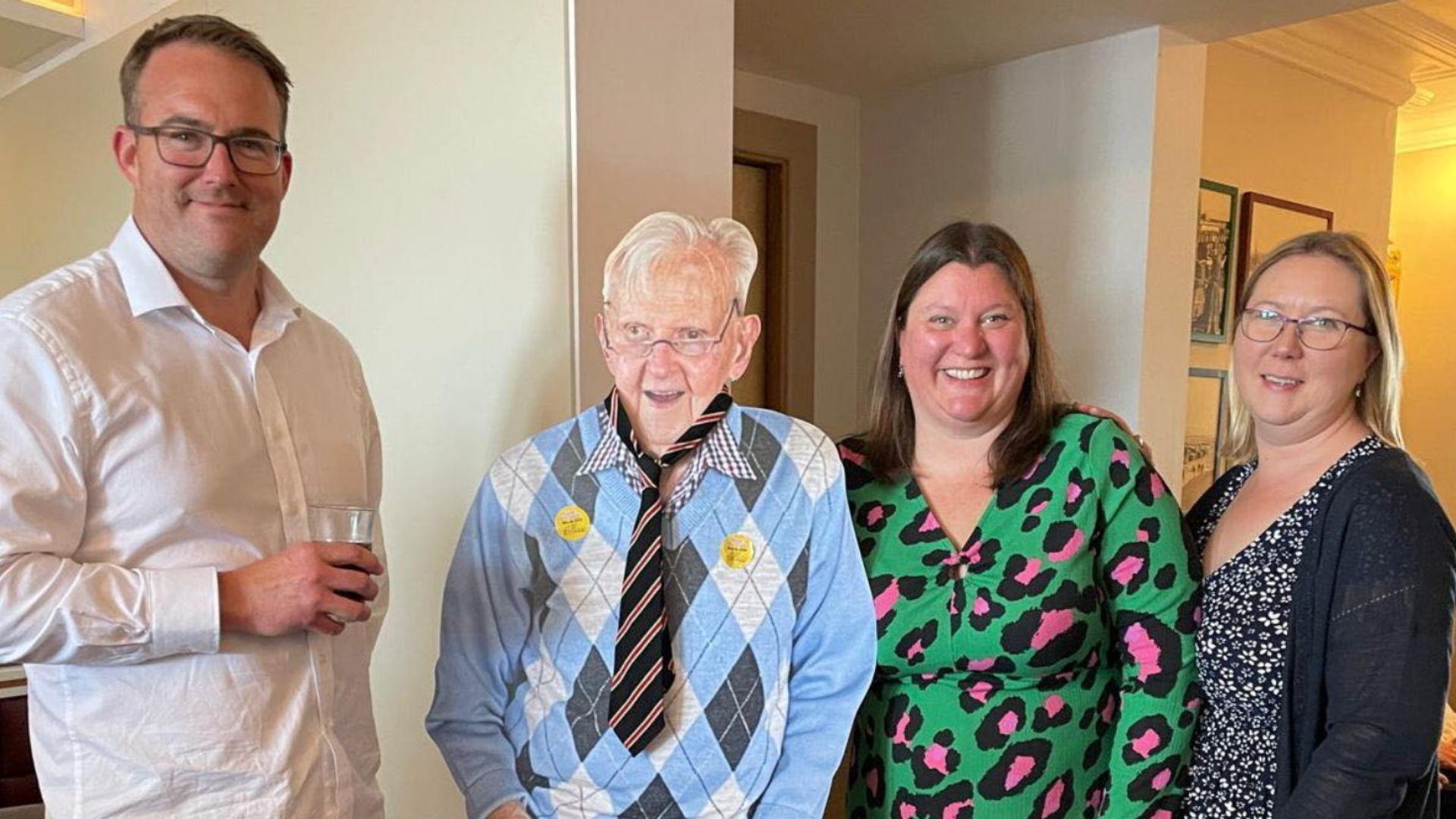 A family fulfilled their great-grandfather's wish to attend his own funeral by bringing a life-sized cut-out of him to the celebration. John Calthorpe, a former police sergeant who passed away at 97, had always expressed this desire to his relatives. They honored his wish by creating a 5ft 10ins plastic cut-out for the memorial event in Norfolk, England. Family and friends gathered happily at a hotel to celebrate John's life, sharing memories and scattering his ashes on Gorleston seashore as per his wishes.
