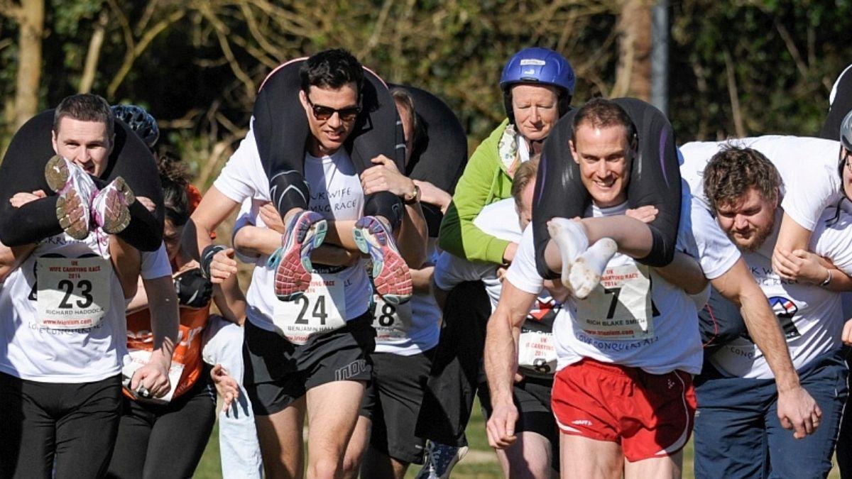 Marriage vows usually promise to carry each other through life. In one corner of England, some couples take that idea very literally. About two dozen pairs gathered on a grassy hillside in Dorking, Surrey, on Sunday for the annual U.K. Wife Carrying Race, a quirky competition where partners sprint uphill and down while carrying their significant other on their backs. Clinging tightly, the “wives” bounced along as their partners tackled the 380-metre course, navigating hay bale obstacles and even the occasional splash of water thrown in their direction. The fastest pair of the day came from Finland. Teemu Touvinen and Jatta Leinonen completed the course in one minute and 45 seconds, winning the race and the traditional prize: a barrel of local ale. The unusual event is loosely inspired by a 19th-century Finnish legend about a gang that raided villages and carried women away. Today, the competition has evolved into something far less sinister and far more playful. Participants often show up in costumes, and the rules allow flexibility in who carries whom. “You do not have to carry your own wife. It could be someone else’s. Or a mate, girlfriend, boyfriend, sister or brother,” organizers said. “They should ideally weigh less than you do.” The only strict requirement is weight. The person being carried must weigh at least 50 kilograms. If they weigh less, they must wear a backpack filled with flour or water to meet the minimum. Competitors can choose their own carrying style, but most racers opt for the traditional “Estonian Hold.” In that technique, the partner hangs upside down on the carrier’s back with their legs wrapped around the runner’s shoulders and crossed in front of their face. It looks awkward. And it is. But it also allows the runner to keep their arms free and maintain better balance as they race across the hillside. The course itself is not especially long by normal running standards, but with someone hanging upside down from your back, it becomes a much bigger challenge. Organizers describe the distance as “a long way under the circumstances.” While still considered a niche sport, wife carrying competitions have spread well beyond Scandinavia. Events now take place in the United Kingdom, the United States, Australia, Poland and several other countries. The race in Dorking first began in 2008 and has grown into a popular annual spectacle. The fastest British couple this year, Edward Nash and Kathryn Knight, finished just four seconds behind the Finnish winners. Their second-place finish still comes with an important reward. Nash and Knight will represent the United Kingdom at the World Wife Carrying Championships in Finland this July. There, they will join competitors from around the world who are ready to run, stumble and laugh their way across another course. All while holding on tight.