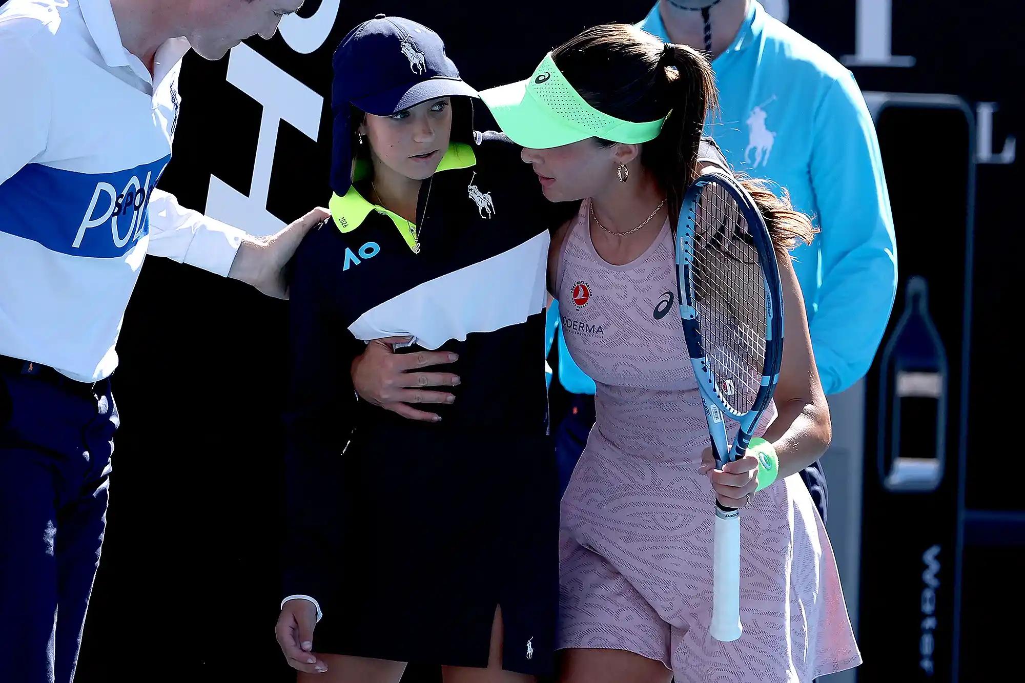 Turkish tennis player Zeynep Sonmez made headlines at the Australian Open not just for her on-court performance — but for a moment of compassion that briefly paused play. Sonmez, 23, was mid-match against Russia’s Ekaterina Alexandrova on Jan. 18 when a ball girl collapsed on the sidelines in Melbourne’s heat. Footage from the match shows the girl falling backward, briefly getting up, and then stumbling again. That’s when Sonmez stopped the game and rushed to help. “She was really struggling,” Sonmez later told the BBC. “She said she was fine, but it was really obvious she was not fine. So I went to grab her and said, ‘Sit down and drink something, you're not fine.’ As we were walking, she fainted, so luckily I grabbed her. She was really shaking.” In the video, Sonmez can be seen helping the girl stay upright, draping her arm over her shoulder and walking her toward medical staff. At one point, she caught the girl as she appeared to lose consciousness again. The match resumed after a six-minute delay. Temperatures during the day had soared — with forecasts predicting even higher heat in the coming days. “I always say it is more important to be a good human being than a good tennis player,” Sonmez said. “It was just my instinct to help her and I think everyone would do the same. I'm happy I got to help.” After the interruption, Sonmez went on to win the match, defeating world No. 11 Alexandrova. The victory made her the first Turkish woman in history to reach the second round of the Australian Open. Sonmez, currently ranked No. 112, has earned growing attention for her performance — but it’s her quick thinking and empathy during a tense moment that has won her admiration far beyond the tennis world.