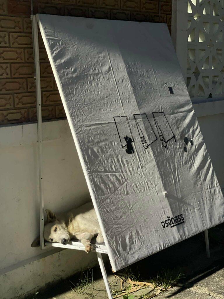Ajarn Yossaphon Chanthongjeen, a doctorate student, noticed the lack of shelter for homeless dogs in Pak Kret, a suburb of Bangkok. He worked with Stand for Strays to come up with a simple solution: Repurposing hard poster boards into basic shields from the elements. Ajarn started with just 20 shelters placed in different areas of the city, and the dogs immediately found the shelters and put them to good use! A newer design even has spots to hold food and water bowls. Volunteers and neighbors often feed the dogs, so this system makes it even easier.